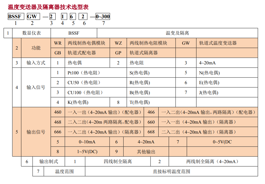 BSSFWR及BSSFGW溫度變送器,是把溫度傳感器所測得信號放大并轉換成線性關系的4~20mA,并遠傳給控制室做顯示、記錄和調節。溫度變送器采用的兩線制傳輸結構,及電源與信號同線傳輸(電源線和信號線共線)。兩線制溫度變送器根據功能可以分為普通型、隔爆型、本安型;根據安裝的位置不同可分為模塊式和軌道式;根據是否隔離分為普通型和隔離型溫度變送器及隔離器技術選型表。
